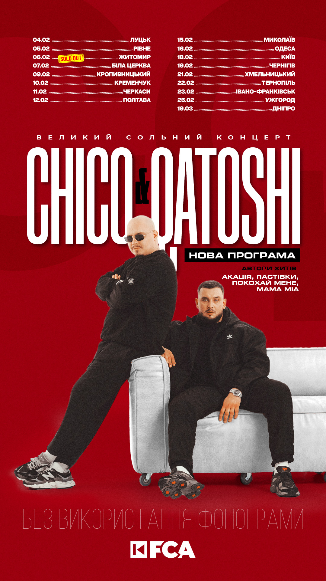 Будь в курсі нових концертів, знижок і спецпропозицій від FCA.