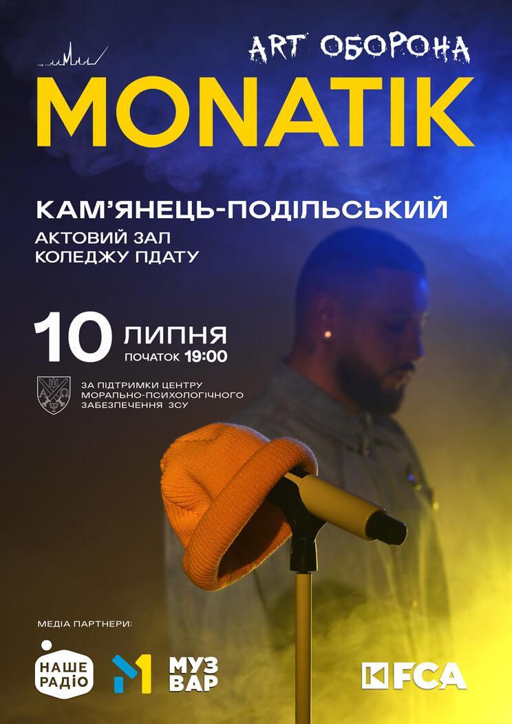 Основною ціллю Всеукраїнського туру MONATIK “ART Оборона” є спільна ініціатива артиста з Фондом “Твоя опора” – збір коштів на допомогу дітям та сім’ям з деокупованих та прифронтових територій України. Протягом кожного з концертів будуть додатково проводитися благодійні аукціони та різноманітні спеціальні активності, спрямовані на збір коштів для українців, що будуть реалізовуватися в колаборації з партнерами “Наше радіо”, “МУЗВАР” та Музичний телеканал “М1”.
